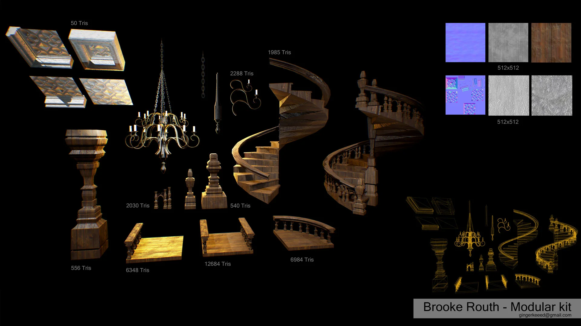 All pieces were created in Maya and then textured using Crazy Bump and Photoshop. The engine is Unreal 4